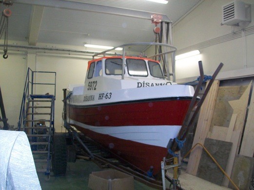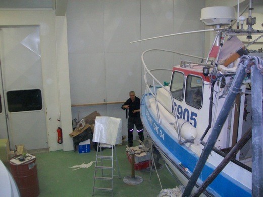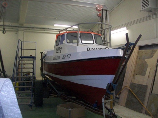 Sólplast tók fyrir mig þessar myndir á föstudag og laugardag og sendi mér ásamt þessum texta: Fjóla skemdist í óveðrinu um dagin . Sólplast gerði við hann. Dísanna að fara eftir vélaskifti. Sandvík að fara eftir Lengingu um 1 meter og er nú sómi 9oo og með nýtt rafmagn og Steini 6905 er í vélarskiftum