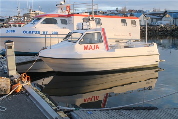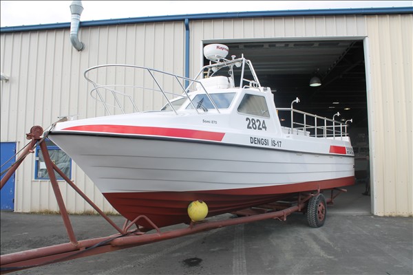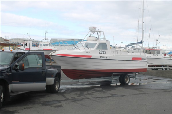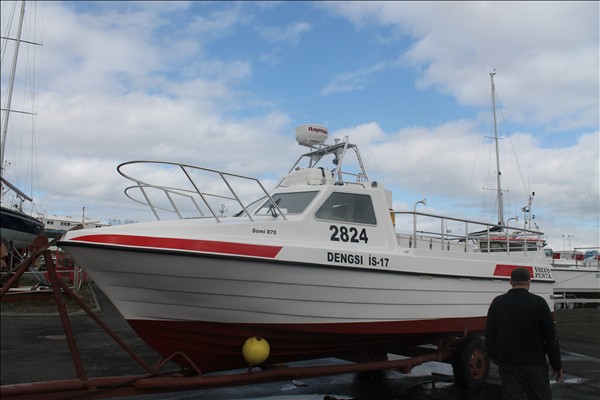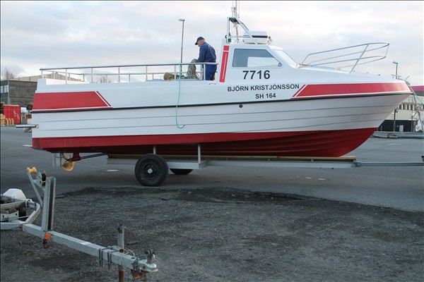 Þessi var sjósettur í Hafnarfirði í vikunni, en hann er framleiddur hjá Bláfelli, Ásbrú og er af gerðinni Sómi 595, sem segir að hann sé undir 6 metrum