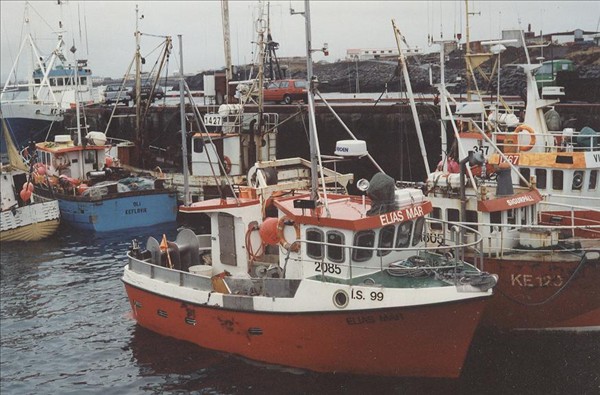 2085. Elías Mar ÍS 99 og 1805. Sigurpáll KE 120 o. m. fl. í Keflavíkurhöfn © mynd Emil Páll, 1990