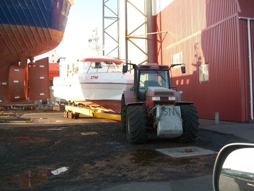 Ferð GULLVAGNSINS frá Njarðvikurslipp til Sólplasts í Sandgerði