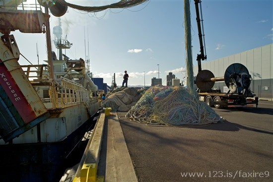 Veiðarfærunum spólað á land við Skarfabakka í Reykjavík © mynd Faxagengið, faxire9.123.is í maí 2012