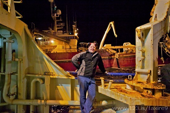 Svenni vélstjóri á Faxa RE 9 brosti blítt þegar dælt var yfir í 1525. Jón Kjartansson SU 111 © mynd Faxagengið, faxire9.123.is í maí 2012