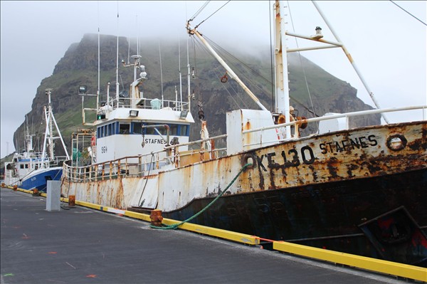 Nokkuð skemmtilegt að horfa á myndina, þar sem skipið var áður tengt sama útgerðaraðila og á skipið sem sést fyrir aftan og bæði höfðu þau númerið VE 108. Stafnesið var Narfi VE 108 og skipið fyrir aftan er Maggý VE 108