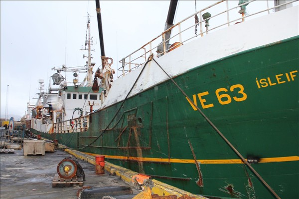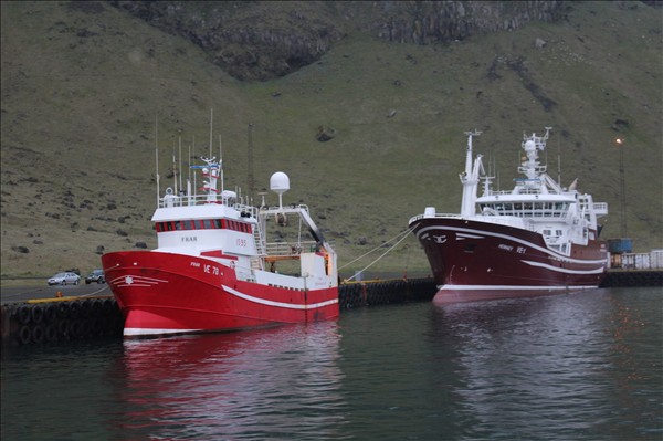 Þessir bátar eru að bíða eftir makrílveiðunum, en Ísleifur hefur verið notaður til að toga á milli Kap og Sighvats, til skiptis, á tveggja báta makrílveiðum.