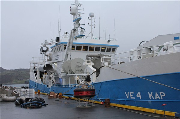 Valberg VE heitir skipið, var áður Saxhamar SH, en nú hefur útgerðarmaðurinn Garðar Valberg Sveinsson samið um að það verði eitt af þremur fylgdarskipum rannsóknaskipsins Nordic Explorer við hljóðbylgjumælingar á Jan Mayen-hryggnum. Eftirlitsmenn frá Bretlandi og Noregi á vegum eiganda Nordic Explorer voru í dag að taka út skip Garðars en hann hefur undanfarin sex ár notað það í þjónustu við olíuleit, bæði við Noreg og Grænland.