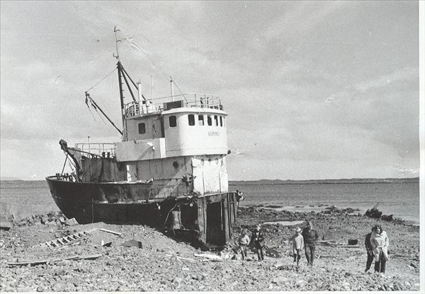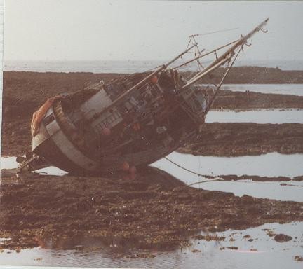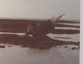 Hér koma þrjár myndir sem ég tók af bátnum í febrúar 1980, eftir að hann hafði strandað í Sandgerði.