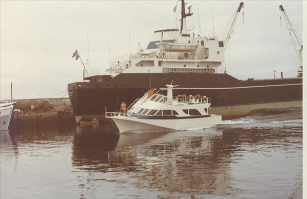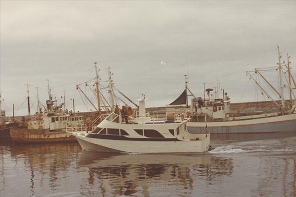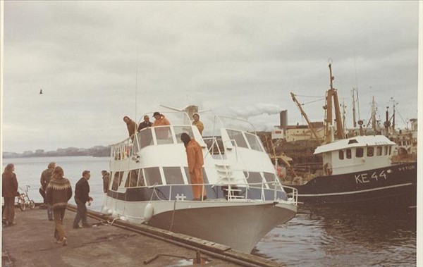 Hér er á ferðinni 40 tonna ál- skemmtiskip sem smíðað var á Akranesi og hljóp þar af stokkum í nóvemberg 1973 og var með tvær 300 hestafla Caterpillar vélar. Skipið var selt til Bandaríkjanna í nóvember 1977. Birti ég hér þrjár myndir af skipinu er það kom í stutta heimsókn til Keflavíkur.