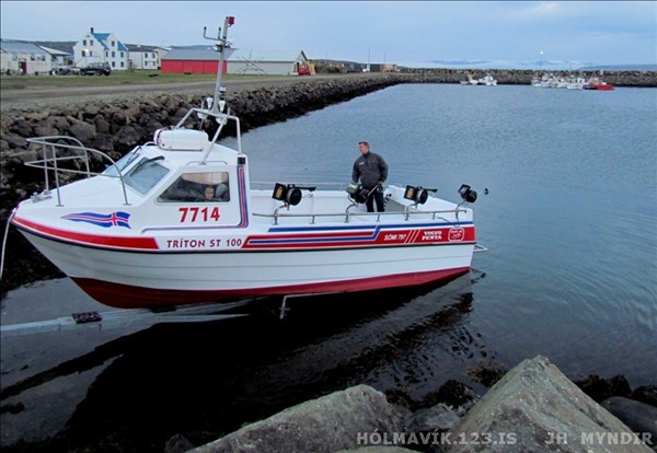 7714. Tríton ST 100, sjósettur að nýju og nú á Hólmavík laust eftir miðnætti í nótt © myndir Jón Halldórsson, holmavik.123.is