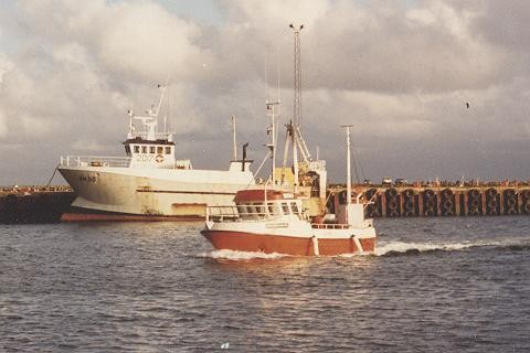 Nýsmíði nr. 1 hjá Ol. Olsen, sjósettur 1989 og ári síðar og tveimur nöfnum síðar, strandaði hann og ónýttist. Sjá umsögn fyrir ofan myndina © mynd Emil Páll, 1987