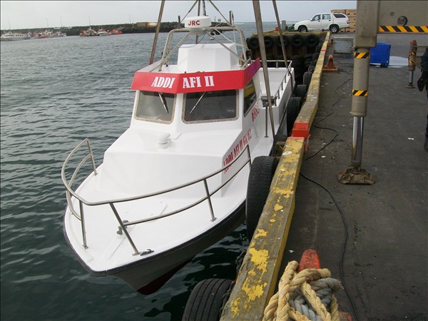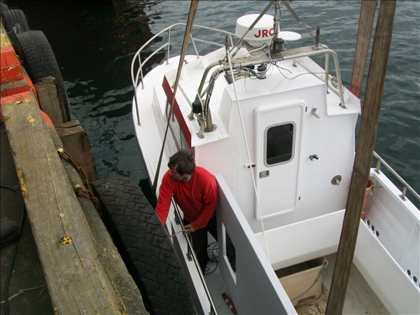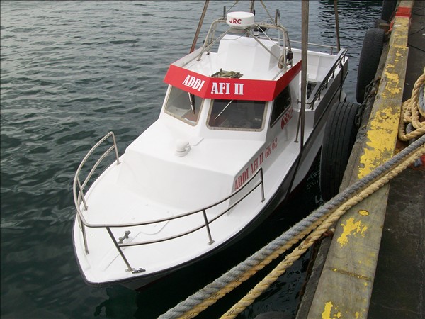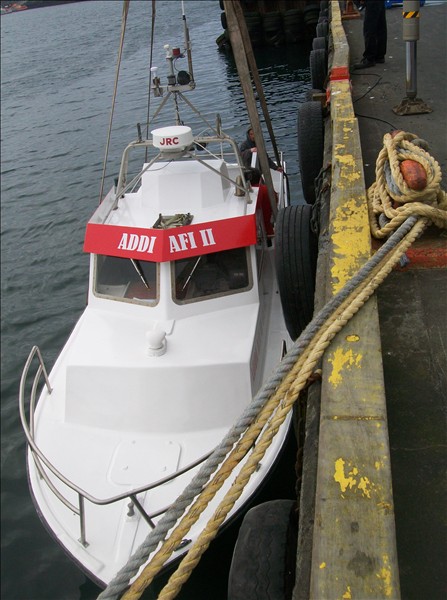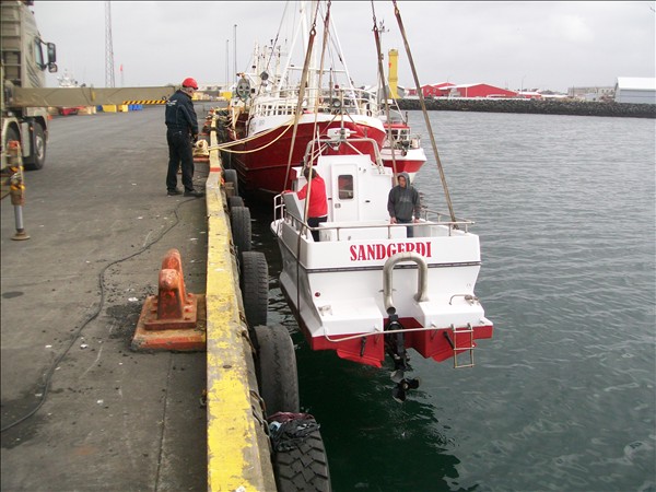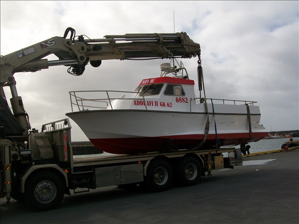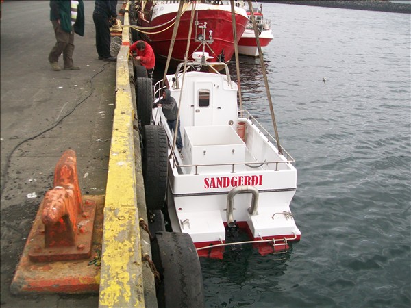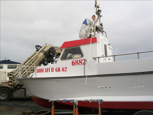 Krummi er frambyggður plastbátur, um 6 metra langur.