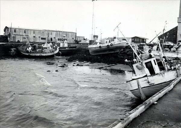 Vörubíllinn í horninu og 1217. Sóley KE 15 © myndir úr myndasafni Víkurfrétta, frá 5. jan. 1984