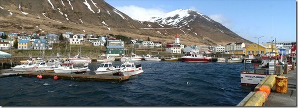 Smábátahöfnin, Siglufirði að morgni 1. maí © mynd Hreiðar Jóhannsson, 2012