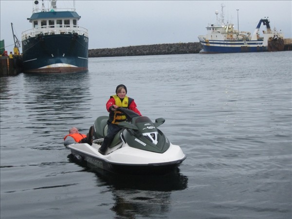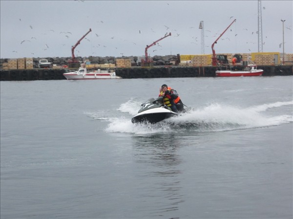 Hér sjáum við feðga leika sér á léttskýi á Sandgerðishöfn á laugardag og á sumum myndanna má að auki sjá aðra báta í höfninni. Nánar undir syrpunni.