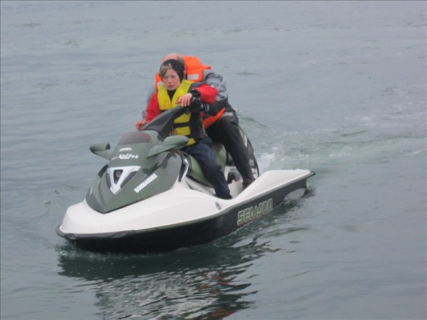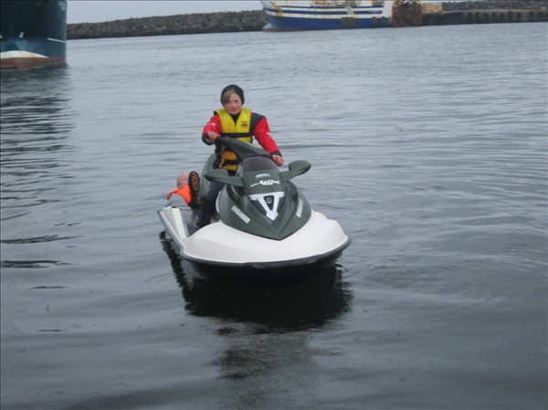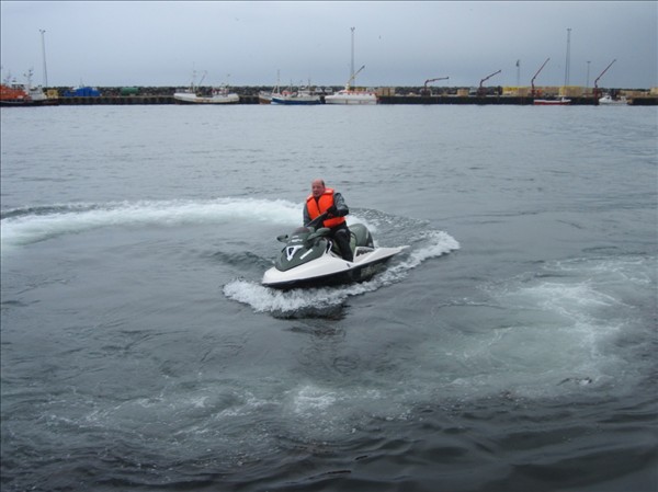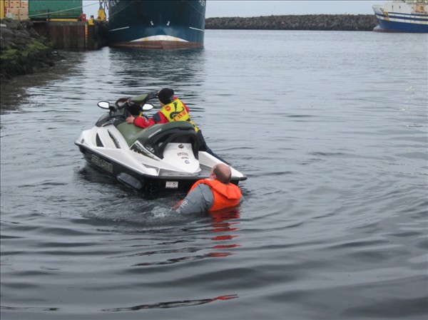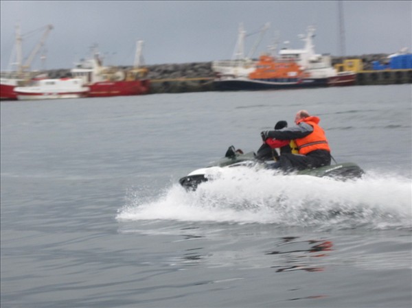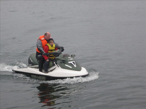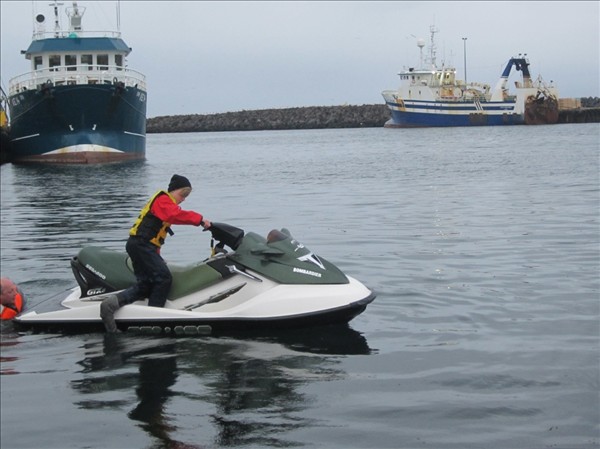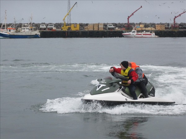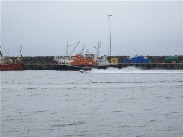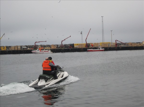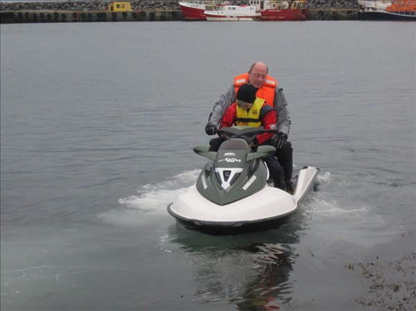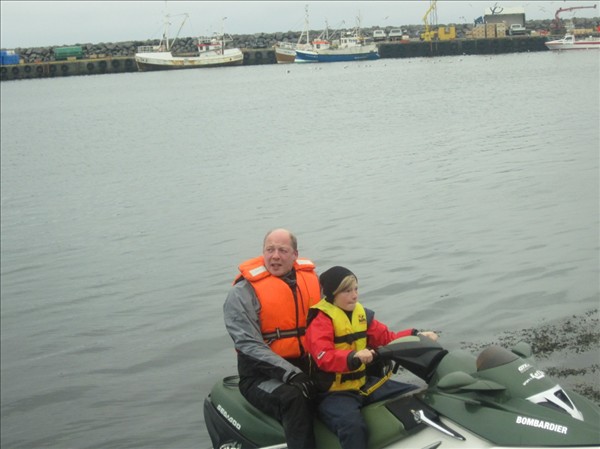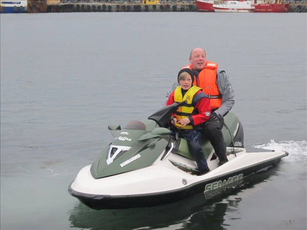 Feðgarnir Kristján Nielsen í Sólplasti og Benjamín Smári leika sér á Sandgerðishöfn © myndir Ástrós Sóley Kristjánsdóttir, 28. apríl 2012
