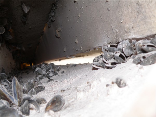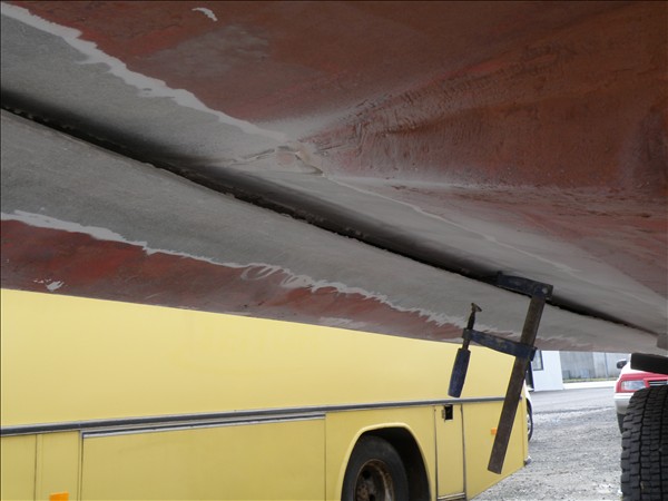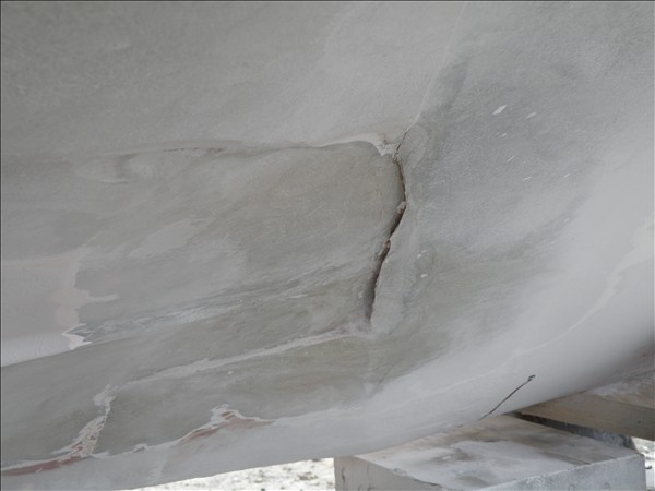 Hér sést sprunga eftir öðru síðustokknum, séða utan frá