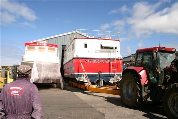 Siglufjarðar-Seigur hefur lokið við að breyta og endurbæta Kidda Lár GK 501, sem nú heitir Bíldsey SH 65. Hér sjáum við fimm myndir af því þegar hann var í gær tekinn út hjá þeim á Siglufirði. En til þess fengu þeir Gullvagninn frá Skipamíðastöð Njarðvíkur og er hann kominn á vagninn á myndunum.