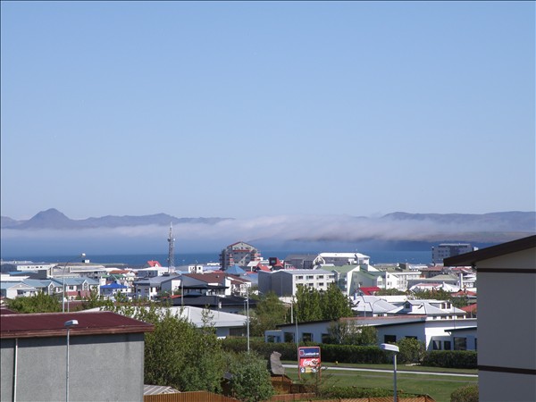 Þoka leggst yfir Vogastapa og Vatnsleysuströnd um kl. 15.15 © mynd Emil Páll, 2. júní 2012