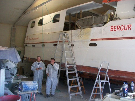 2746. Bergur Vigfús GK 43, í dag á 2. degi yfirbyggingarinnar hjá Sólplasti í Sandgerði og yfirbyggingin komin á © myndir Bogga og Stjáni, Sólplasti 1. júní 2012