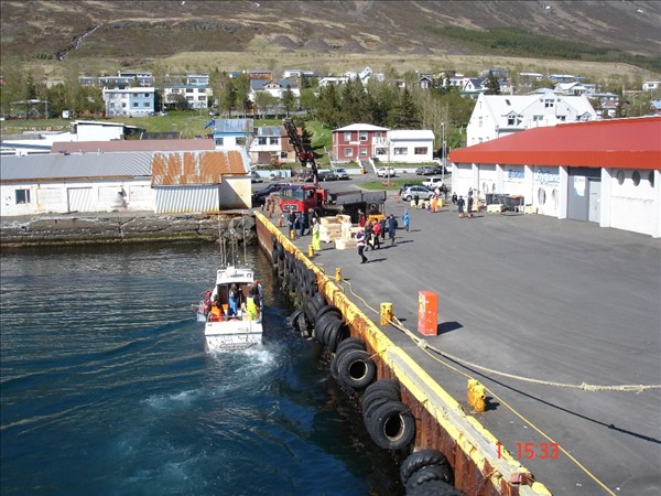 Meðfylgjandi myndir voru teknar í Siglufjarðarhöfn í morgun af löndun úr Sigurbjörgu og Múlabergi að koma í höfn.