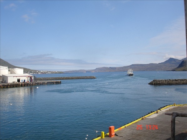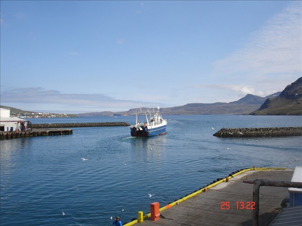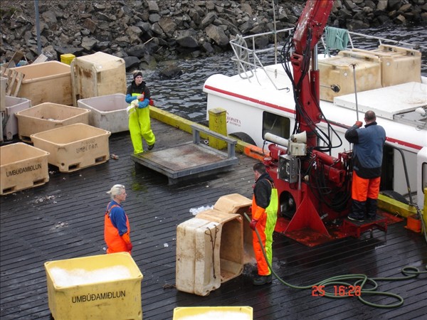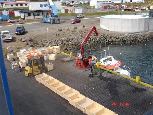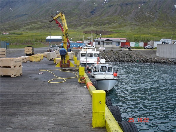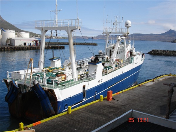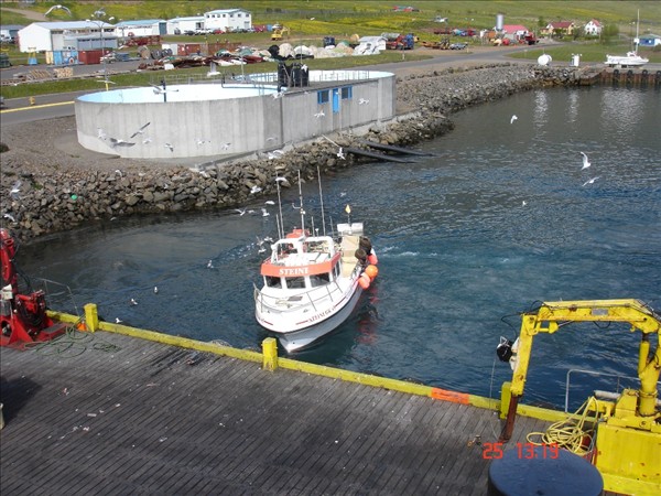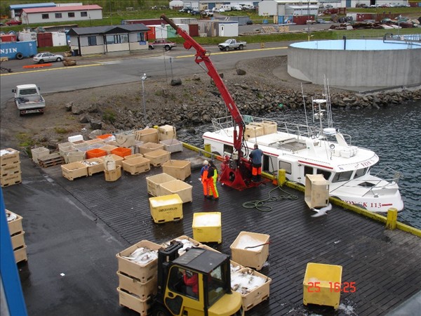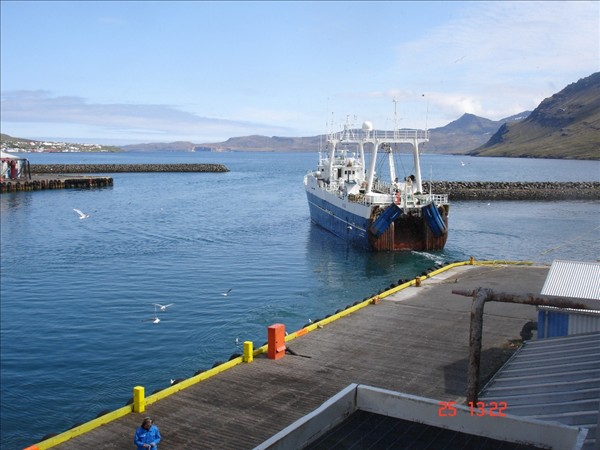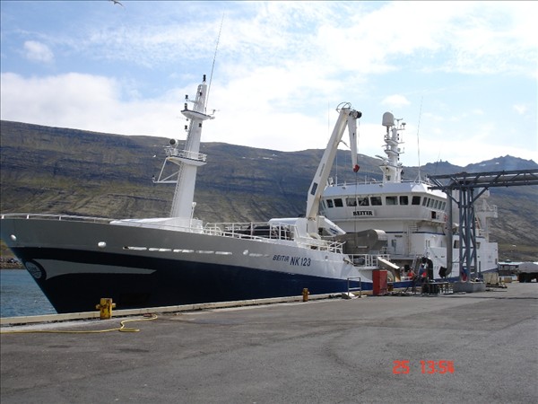 bæjarbryggjuna að löndun lokinni. Beitir NK færði sig undir löndunarrörið