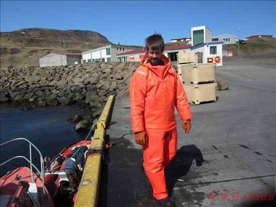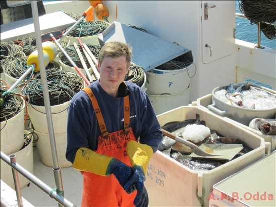 Mynd frá Kristni sem prýðir forsíðu Sjómanndagsblaðs Grindavíkur árið 2012 og var tekin um borð í Farsæli GK 162, fyrr á þessu ári.