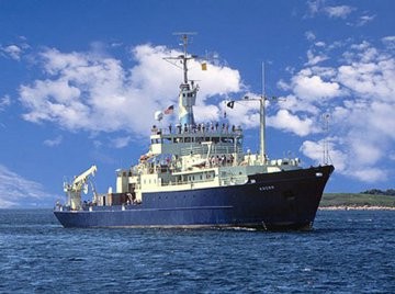 Knorr, bandaríska rannsóknarskipið, sem laumufarþeginn frá Íslandi er í © mynd mbl.is