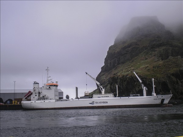 Silver Ocean, að taka frosinn makríl í Eyjum