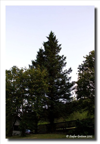 Þetta grenitré er jafngamalt mér, gróðursett á lóð afa míns