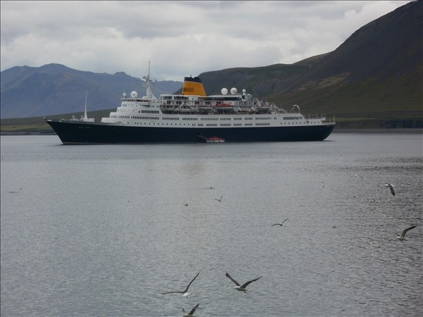 Nóg er af skipum núna, en Le Boréal var á sunnudaginn í 3. heimsókninni, í gær var það Fram, í dag Saga Ruby, á morgun Discovery, laugardag Hamburg og á sunnudag kemur Le Boréal í 4. og síðustu heimsóknina þetta sumarið. Sem sagt frá sunnudeginum 15/7 til sunnudagsins 22/7 eru 6 skip bókuð með komur.