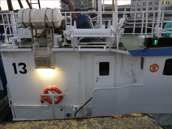 Stýrishúsið á 13. Happasæl KE 94, skartar nú Manchester United merkinu, en ekki Keflavíkurmerkinu © mynd Emil Páll, 16. júlí 2012