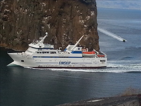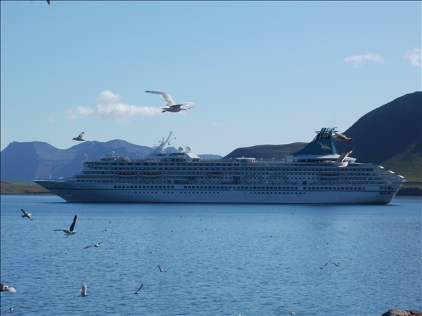 hér við í sumar, með 1200 farþega. Kom það um 6:30 í morgun og fer