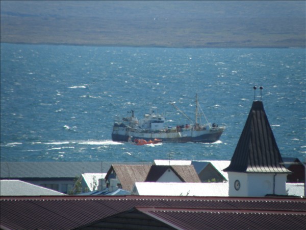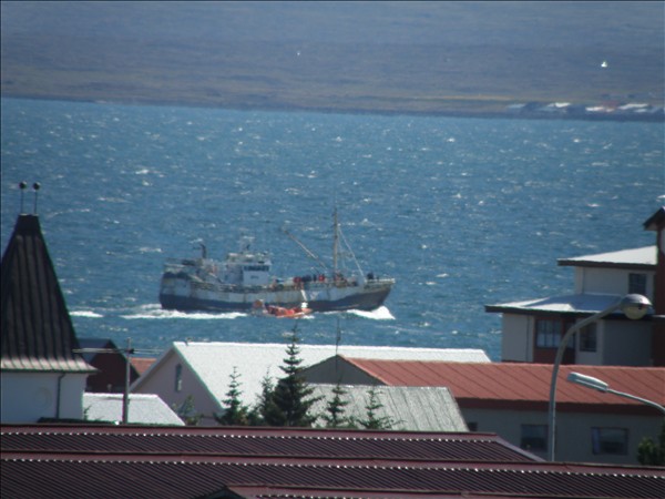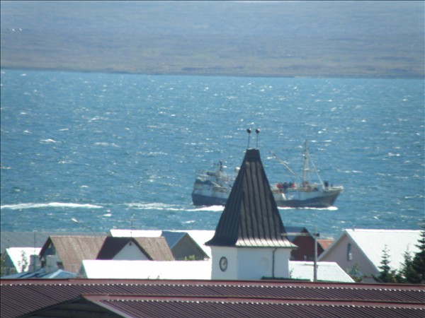 Þetta er sama skip og ég hef birt tvær myndir af í dag, sú fyrsta var er það sigldi fram hjá Eldey og síðan ein í mikilli fjarlægð er það var að nálgast Reykjavík