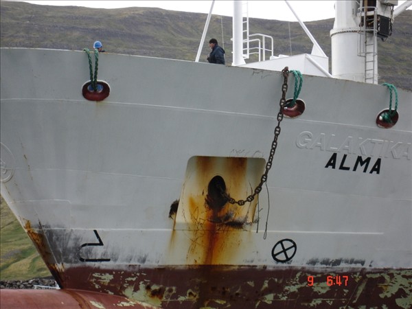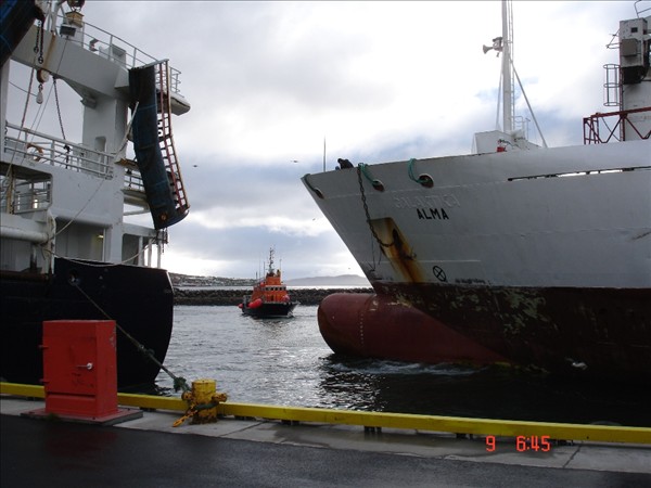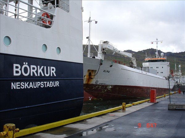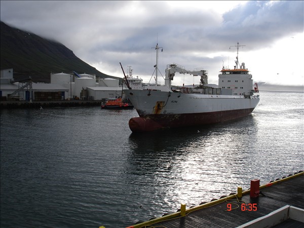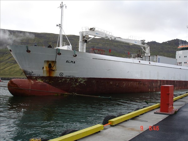 Bjarni Guðmundsson, Neskaupstað: Í morgun kl 06.00 kom lýsisskipið Brovig Brefzl til Neskaupstaðar og um kl. 06.30 kom Alma upp að bryggju en í gærkvöldi átti að taka skipið að bryggju. en var hætt við þar sem ankerið náðist ekki upp og hífðu skipverjar ankerið upp í nótt með bómu skipsins