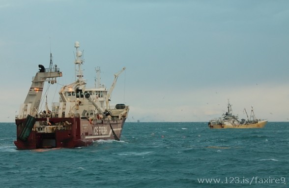 2410. Vilhelm Þorsteinsson EA 11 og 2287. Bjarni Ólafsson AK 70, á miðunum fyrir mörgum árum © mynd Faxagengið, faxire9.123.is