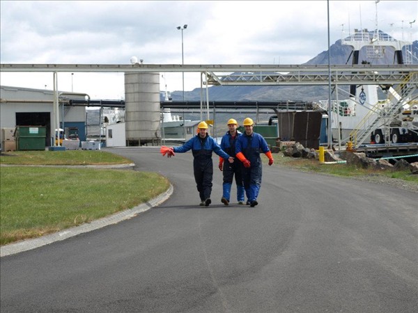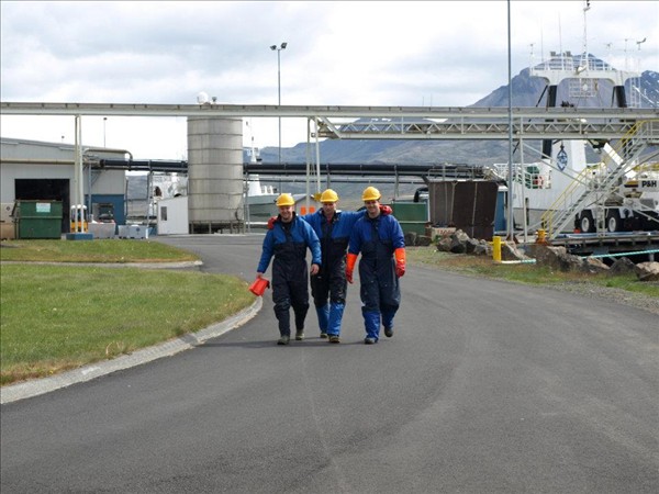 Síldar-og makrílpokarnir á bryggjunni ásamt gröndurum og öðru sem tilheyrir veiðunum.