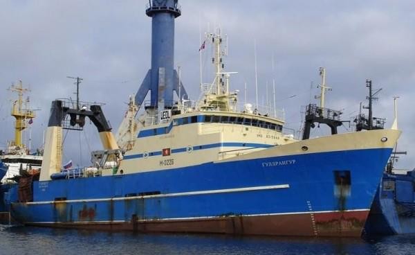 Þessi togari hét í eina tíð 2248. Sindri VE 60, síðan varð hann Guldrangur í Færeyjum, þá rússneskur, en nafnið má lesa á myndinni þ.e. þeir sem kunna að lesa rússnesku og nú er hann aftur orðinn færeyskur.