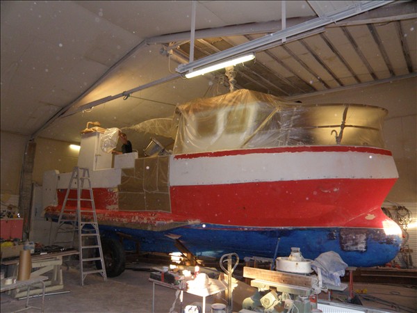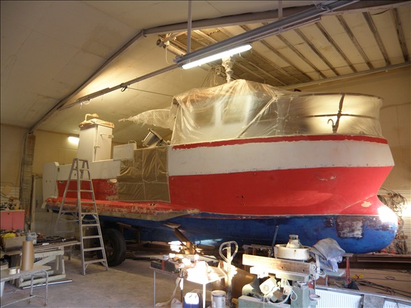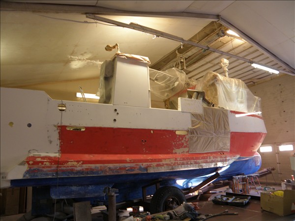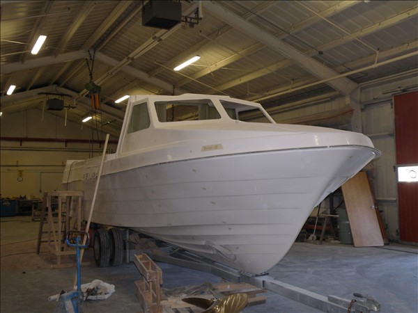 Birti ég hér fjórar myndir af bátnum, þ.e. eins og hann var 2010, hvernig hann var ári síðar þegar búið var að taka húsið af honum og síðan mynd af honum eins og hann er í dag.