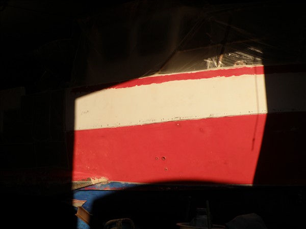 Myndirnar tvær sem birtust áðan, voru svona smá sprell í morgun sárið. Hér kemur í ljós hvað um er að ræða, en það er að í gær var bátnum Adda Afa GK 97 pakkað inn, þ.e. verið var að undirbúa það að sprauta yfir hann nýrri málningu og því var það sem ekki mátti sprautast yfir pakkað inn. Þetta átti sér stað í aðstöðu Sólplasts í Sandgerði og hér sjáum við bátinn þegar því verki var lokið.