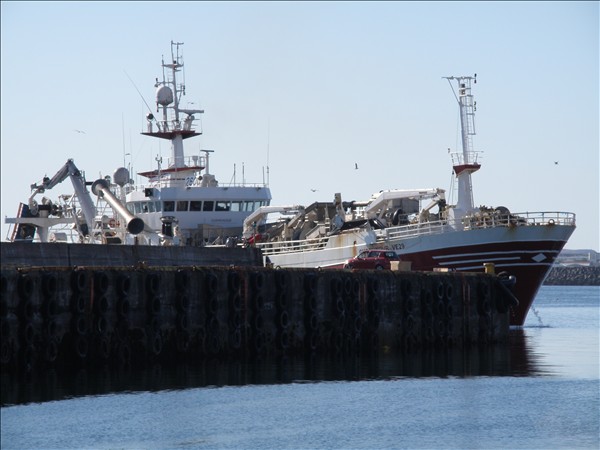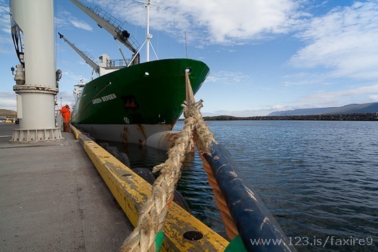 Green Bergen að taka fiskafurðir © myndir Faxagengið, faxire9.123.is 26. júlí 2012