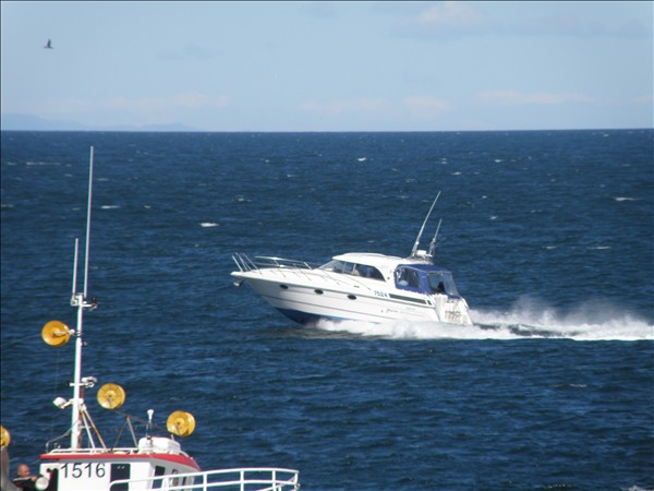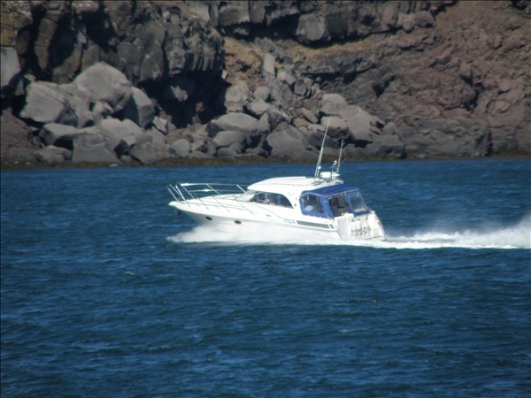 Hér sjáum við skemmtibátinn Miðvík sigla í gær fyrir Vatnsnesið í Keflavík og inn Keflavíkina á leið sinni í Grófina.