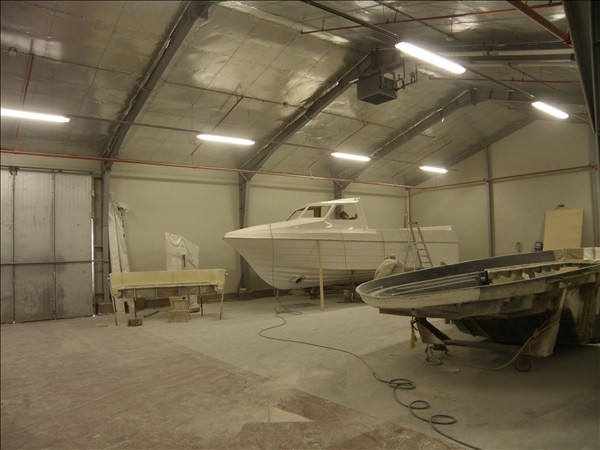 Hver skyldi trúa því þegar komið er að nýjum höfuðstöðvun Bláfells ehf. á Ásbrú að um sé að ræða framleiðslufyrirtæki á sviði plastbáta. En eins og sést á efstu myndinni fátt sem minnir þá slíka starfsemi, enda var þarna í eina tíð skemmtistaður hjá Varnarliðinu og því er útlitið eins og það er.