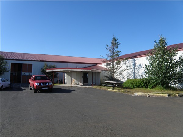 Svona lítur framhlið hússins út og minnir lítið á framleiðslufyrirtæki á sviði plastbáta