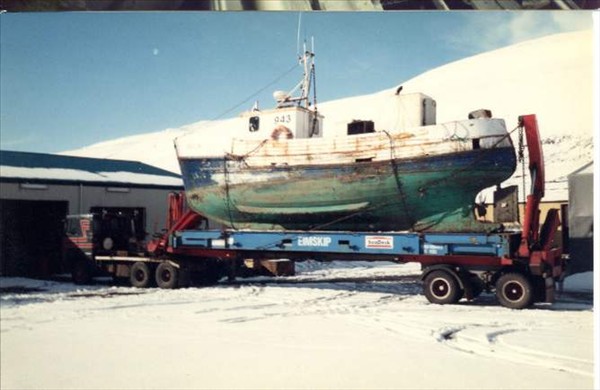 Tók hann tvær myndir og sýnir sú fyrri stýrishúsið að framanverðu þar sem nafnið kemur vel fram og hin sýnir sama stýrishús aftanfrá og þar má sjá skipaskrárnúmerið 980.