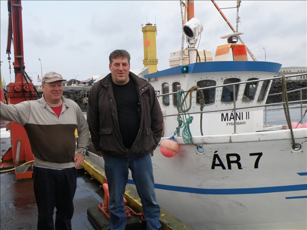 F.v. Gissur Baldursson og Ragnar Emilsson, við hlið 1887. Mána II ÁR 7, í Sandgerði í dag © mynd Emil Páll, 13. ágúst 2012