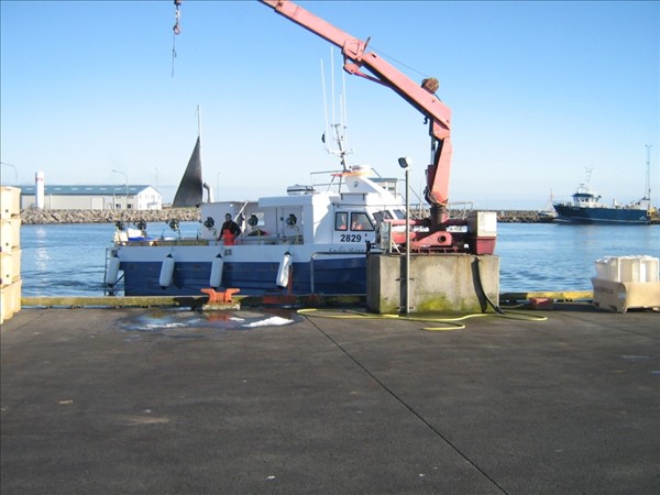 Um borð eru tveir reynsluboltar í sjómennsku, þeir Ragnar Emilsson og Gissur Baldursson. Eftir að þeir eru búnir að ganga frá bátnum fara þeir á bíl frá útgerðarfyrirtækinu sem gerir bátinn út, austur á Eyrarbakka með aflann, en þar er hann unninn, hjá útgerðinni.