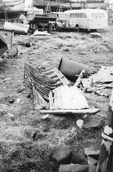 Hér kemur mynd sem tekin var árið 1963 við Njarðvíkurslipp og fremst sést hluti af flaki af báti sem bræðurnir Stefán og Valur Guðmundssyni (ljósmyndarinn), í Njarðvík áttu.