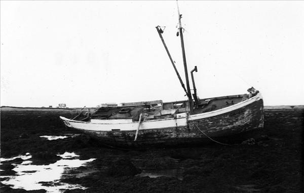Anna GK 461, eða flakið af bátnum sem slitnaði upp af bóli og rak upp í Njarðvik 28 febrúar 1941. þar sem báturinn eyðilagðist © mynd Valur Guðmundsson, 1963