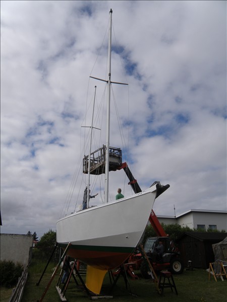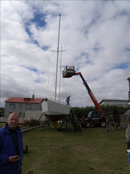 Hér birtast myndir af því þegar verið er að ganga frá möstrunum í gær, svo og myndir af Vali og þeim sem hjálpuðu honum við að koma möstrunum á öruggan stað. Auðvitað birtist einnig mynd af skútinni þegar allt er komið á sinn stað.
