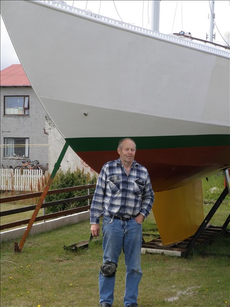 Dagurinn í gær var stór dagur hjá honum því nú sér skútan dagsins ljós og meira en það því í gær voru möstrin sett upp. Meira um það hér á miðnætti, en við fáum líka að njóta gamalla mynda hér á síðunni sem Valur tók á sínum tíma.