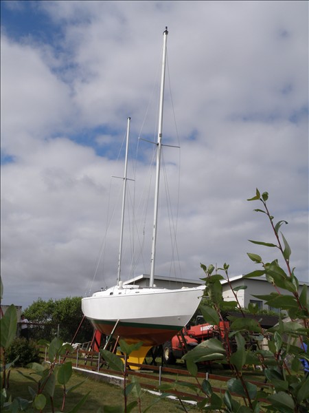 Skútan komin með möstrin, í garðinum við Klapparstíg í Njarðvik
